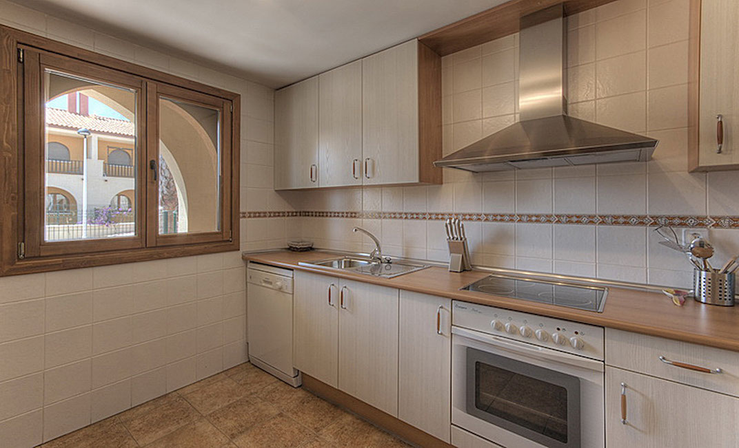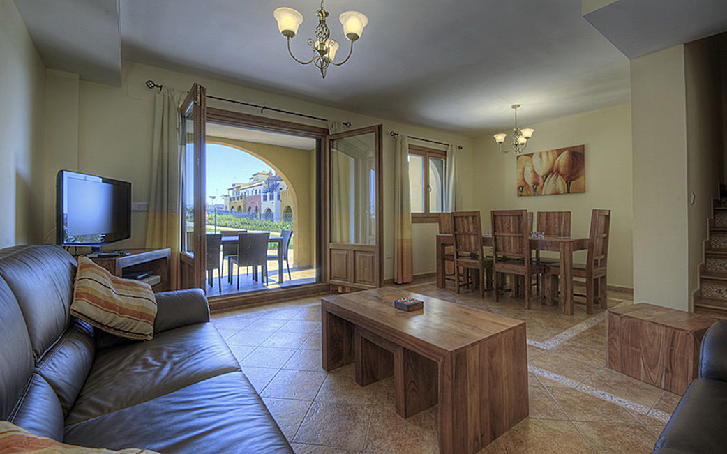 The lounge opens onto a large tiled patio which leads to the communal pools - one paddling pool and one swimming pool. Both pools are close to the townhouse and can be easily monitored from the patio. Please note the pools are closed between the start of October and the end of February. #