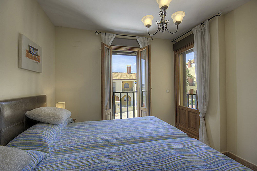 The townhouse comprises three bedrooms - one double bedded room with an en-suite bathroom and two further bedrooms, each with two single beds, sharing the master bathroom.